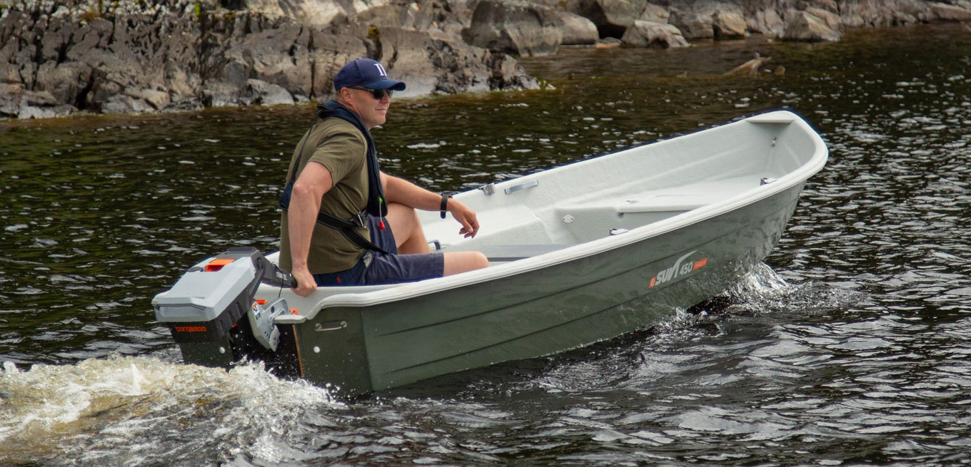 eSuvi 450 med Torqeedo Travel XP eldriven utombordsmotor